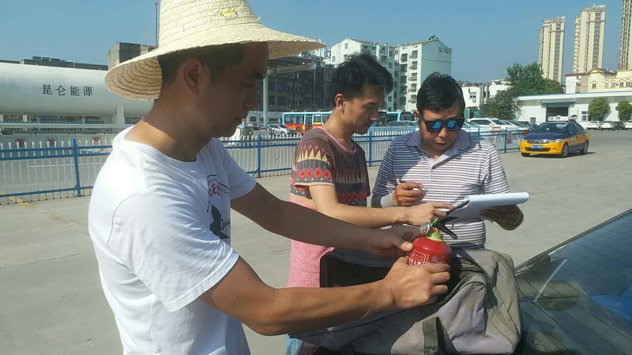 重點(diǎn)檢查車輛是否漏氣,電路和滅火器。對駕駛員私自改裝進(jìn)行整改。要求駕駛員認(rèn)真學(xué)習(xí)公司制定的《出租汽車駕駛員消防安全須知》并簽字。在6月安全生產(chǎn)月已經(jīng)完成的消防安全培訓(xùn)及演練的基礎(chǔ)上,進(jìn)一步加強(qiáng)駕駛員消防安全意識,強(qiáng)化駕駛員發(fā)生車輛火災(zāi)的應(yīng)急自救能力。